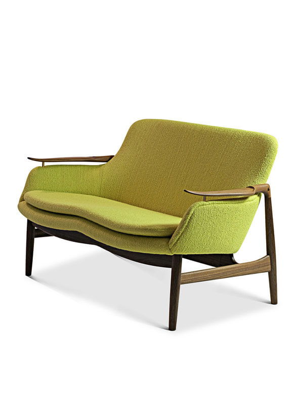 House of Finn Juhl is relaunching both the FJ 53 armchair and the 2-seater sofa with the wavy seat. They are both available in American walnut or European oak and the wooden frames are manufactured in Japan. The upholstery is available in fabric or leather and the process takes place by hand in Ringkøbing, Denmark. The chair is relaunched with an optional cushion, which has hitherto only been seen in Finn Juhl's beautiful watercolor painting of the chair from 1953. It remains unclear why the cushion has yet to see the light of day, but Juhl's original idea complements the chair well. Additionally, you will be able to upholster the cushion in a different color than the rest of the chair.