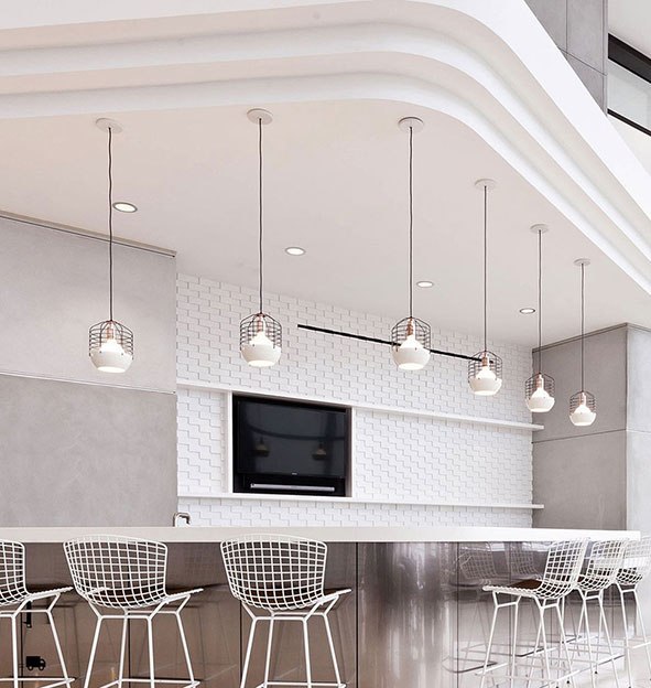 Bluff City merges a traditional pendant shade and a wire cage into an industrially inspired but refined pendant. A variety of finish combinations gives the light a vaguely postmodern feel that echoes the Memphis movement. However, the Tennessee town, known as Bluff City, was the inspiration for the series.