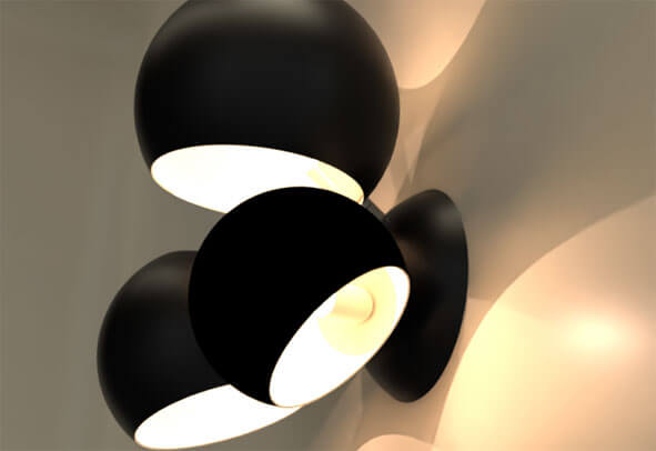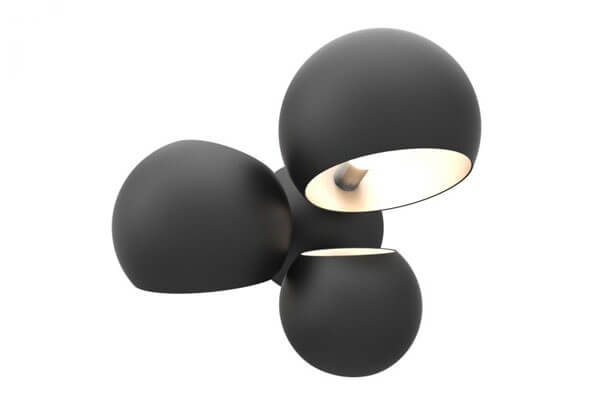 The Boi Cluster features all three sizes of Boi shade on a sconce base. The Boi shades are left open on two sides, allowing light to flow through the entirety of the fixture. All three shades rotate 320° to cast multidirectional light.