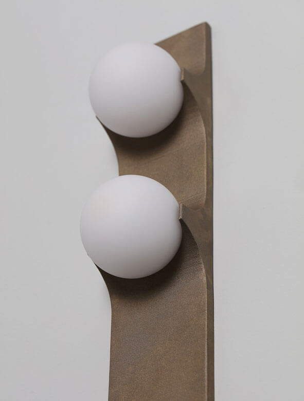 Bridge presents a unique joinery of cast-brass and blown-glass. The curves of the fixture resemble a suspension bridge, which amplify light through its form. Available with 1, 2, or 3 globes; the repetition of its elements creates rhythm and reinforce the poetic intersection of materials.