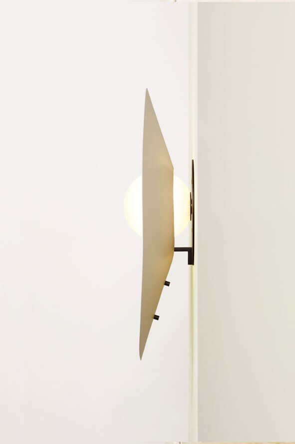 The Compas collection is shaped out of a single sheet of brass fastened to a simple spine. Nestled inside is a pearl of hand blown sandblasted glass. Handmade in LA.