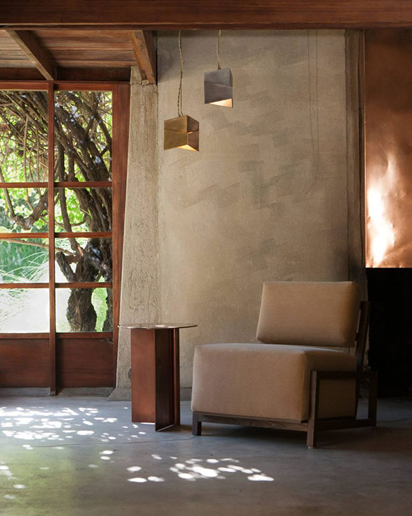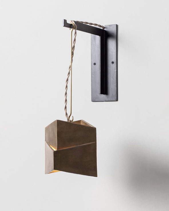 The Decade is a solid brass pendant reminiscent of the California architecture of Rudolf Schindler and that of the Bauhaus. It is available in silver or gold patina. The Decade can be ceiling mounted with a square canopy in raw brass, wall mounted with a blackened steel bracket, or paired with our solid steel floor stand.