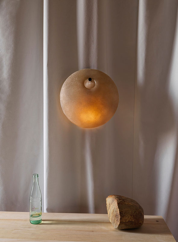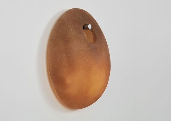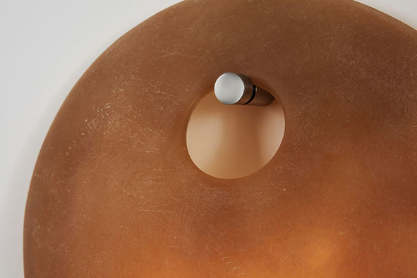 The Fiber series was inspired by nautical materials, textures and connections. The elemental construction uses raw fiberglass discs, illuminated by open blown glass orbs to create airy architectural forms. Each component simply rests in another, which creates a natural ease between materials.