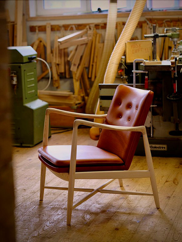 The Fireplace Chair is a timeless design originally conceived by Finn Juhl in 1946. With sensual details such as the paper-knife armrest and its lavish informal comfort, the Fireplace Chair is a true Finn Juhl classic.