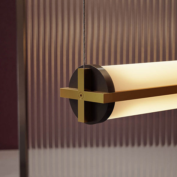 The Metropolis is considered Juniper’s powerhouse solution for commercial and hospitality spaces. The unique cylindrical LED module is bisected by a crossbar forming two independently dimmable hemispheres for direct and indirect lighting. An optional hexagonal mesh diffuses light cast from the fixture and adds a contemporary design element.
