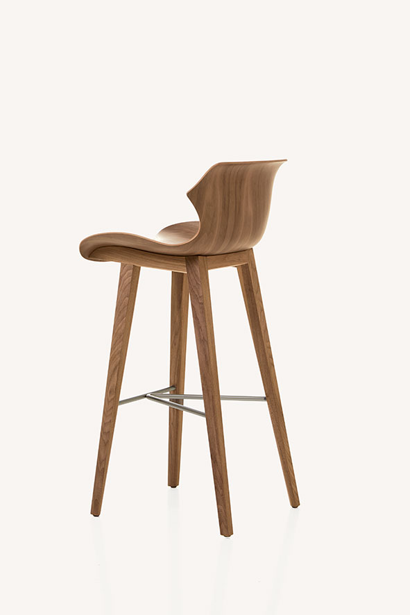 The BassamFellows Petal Chair is the most advanced 3D molded wood veneer chair ever put into commercial production. It takes some of its inspiration from Saarinen’s Tulip chair, and also offers a dialogue with the history of the Charles and Ray Eames experiments. The super-shaped wood mimics the unfolding of flower petals, creating a comfortable ergonomic form. The back is wider at its top to provide support, while rolled waterfalls of shaped wood soften the edges. Petal’s appeal is accentuated by the visual grain of the wood, which resembles the fine detail on a flower – the lines emanating outwards in the direction of a bloom. Made in Italy.