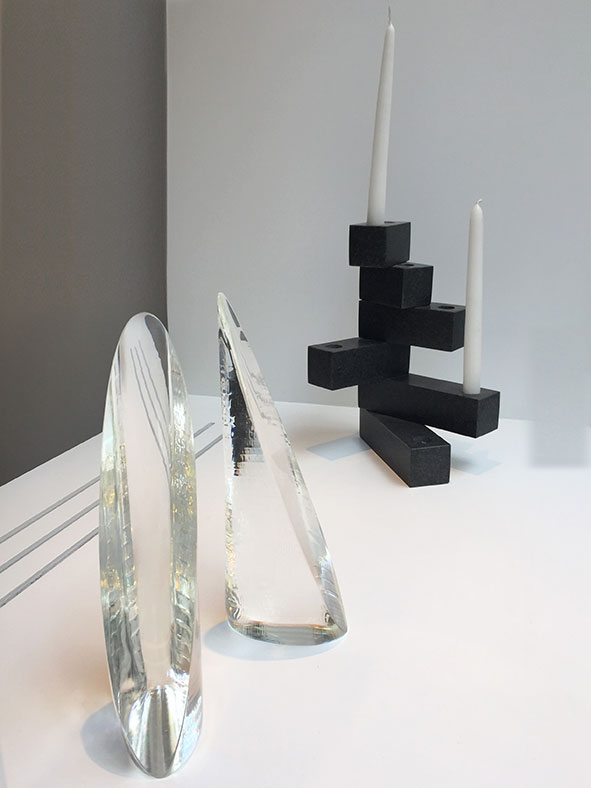 Artwork by glass artist John Hogan, which span functional objects and sculpture, focus on the optical qualities of glass.