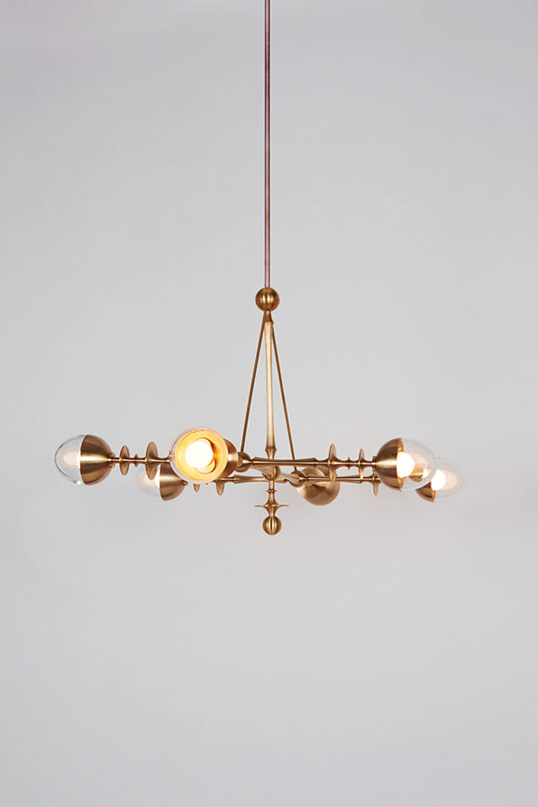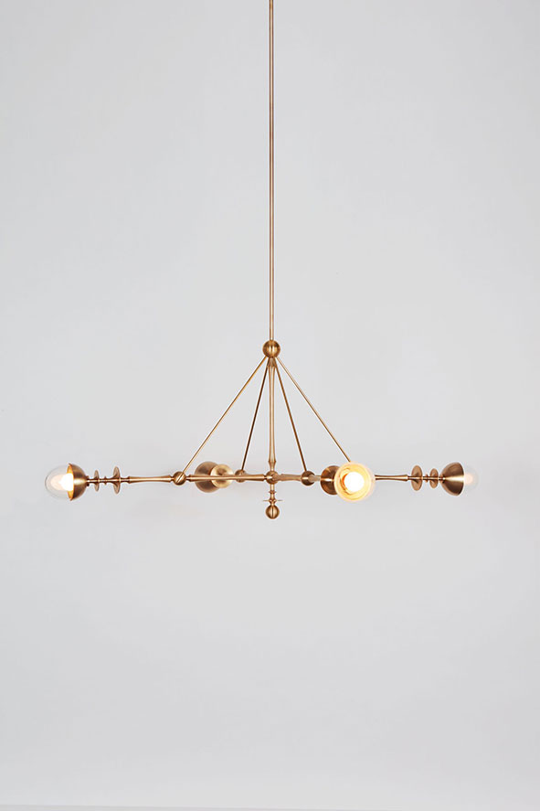 Inspired by summers spent at Helgerson’s ancestral home in Lyon, France, Rue Sala takes its form from the elegant interiors filled with thin Louis XVI furniture, bronze statuettes, and silky fabrics. Translated into turned metal and hand blown glass fixtures, Rue Sala is a delicate and refined collection with timeless appeal.