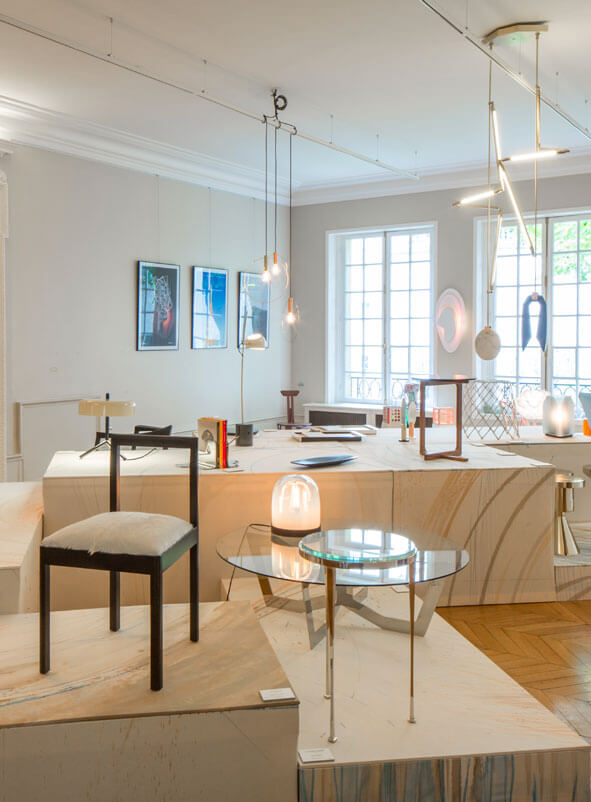 « Après avoir obtenu mon diplôme d’ingénieur horticole, j’ai découvert le monde du design en ouvrant un stand spécialisé dans la création des années 1930, 1940 et 1950 aux puces de Saint-Ouen, puis ouvert ma propre agence d’architecte-paysagiste à Paris et à Lyon. Mon parcours atypique m’a permis de côtoyer les plus grands architectes français et étrangers et de constituer ainsi un solide réseau dans le milieu du design. En 2004, je décidais de vivre ma passion en créant Triode, un showroom niché au cœur de Saint-Germain-des-Prés, reflétant ma sensibilité pour le design américain, mes choix et mes coups de cœur spontanés. »