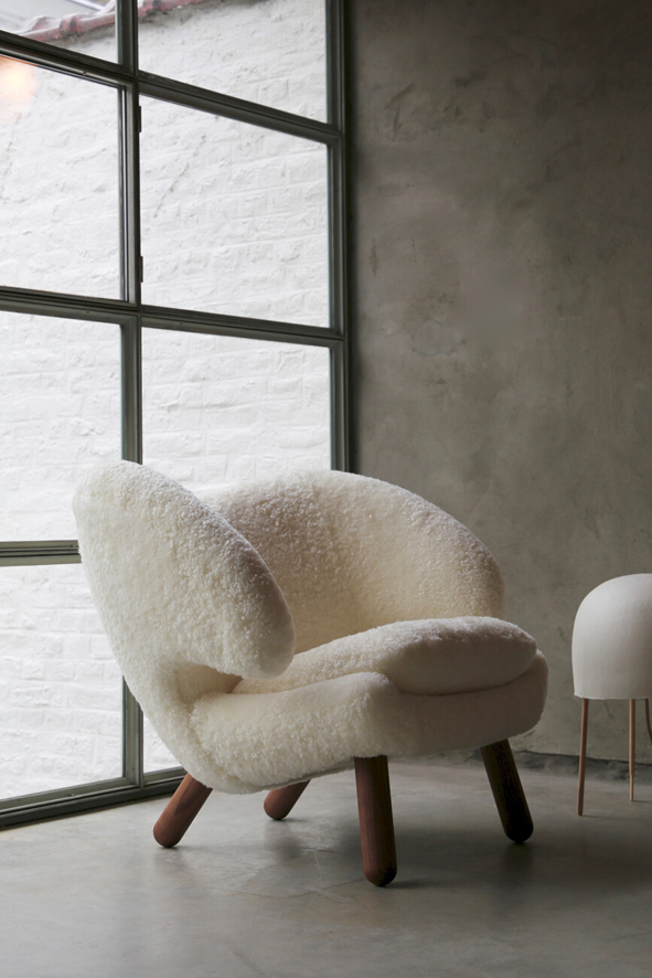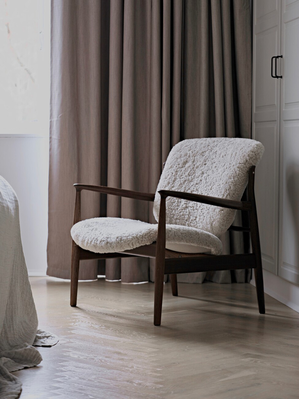 La peau de mouton paraît également avoir été conçue pour les pièces à la forme organique de Finn Juhl. Vous connaissez peut-être le mythique fauteuil Pelican en peau de mouton. Le matériau se marie également de manière remarquable avec d’autres créations du designer scandinave, incluant les canapés Poet Sofa et 46 Sofa, ainsi que la chaise France Chair, aujourd'hui rééditées par House of Finn Juhl.