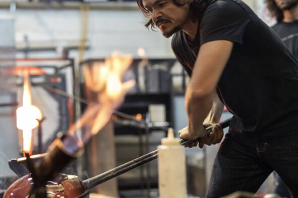 Avec un sens de la beauté, une rigueur et l’amour de son métier, John Pomp perfectionne l'art du verre depuis plus de 20 ans. Ce designer américain réalise du mobilier et des luminaires de design contemporain selon un savoir-faire artisanal en s’inspirant de la beauté naturelle du monde vivant. L’interconnexion des quatre éléments - le feu, l'eau, la terre et l'air - constitue une source d’inspiration pour la conception et les philosophies de John Pomp. Ses pièces sculpturales imitent la merveilleuse géométrie présente dans le monde qui nous entoure, souvent inaperçue, comme l’ondulation à la surface de l’océan ou la dilatation d’une bulle.