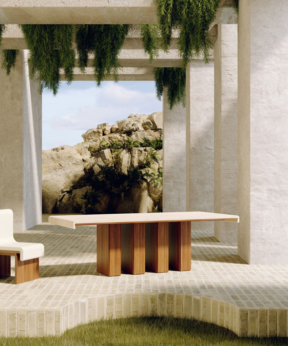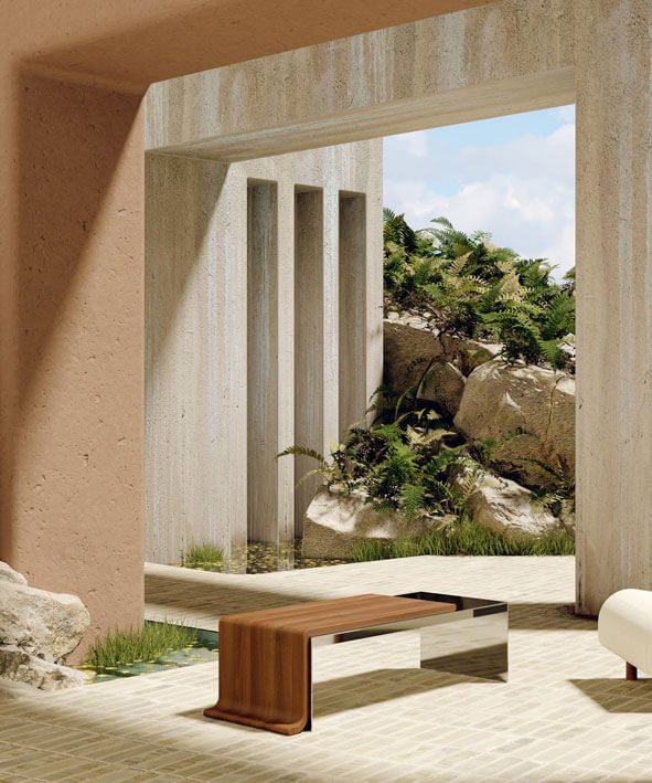 Elégante par la simplicité de son design, Melt est une exploration continue de l’intérêt du studio américain Bower Studios pour le rapport entre la réalité et la perception. Conçue à New York pendant un confinement, la collection remet en question les règles de la nature par le travail de la matière et la forme. Les visuels ont été réalisés en collaboration avec l’artiste 3D et designer numérique Alexis Christodoulou, créant pour la collection un monde parfaitement adapté à leur esthétique surréaliste et sereine.