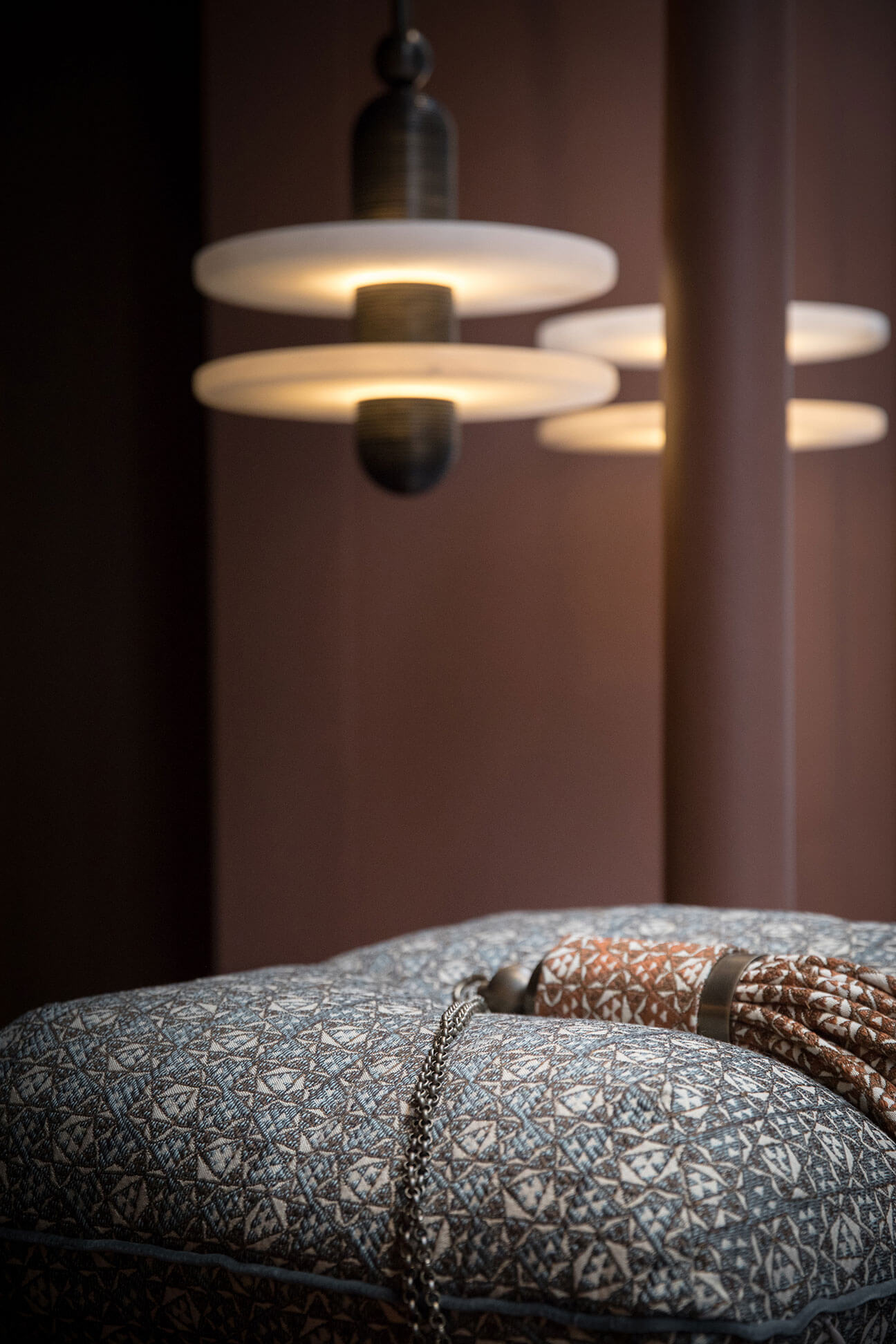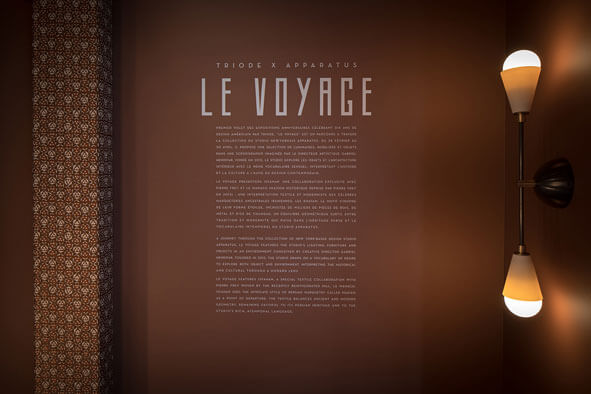 Le Voyage présentera Isfahan, une collaboration exclusive avec Pierre Frey et Le Manach (maison historique reprise par Pierre Frey en 2013) : une interprétation textile et moderniste des célèbres marqueteries ancestrales iraniennes, les Khatam. Le motif s’inspire de leur forme étoilée, incrustée de milliers de pièces de bois, de métal et d’os de chameau. Un équilibre géométrique subtil entre tradition et modernité qui puise dans l’héritage perse et le vocabulaire intemporel du studio Apparatus.