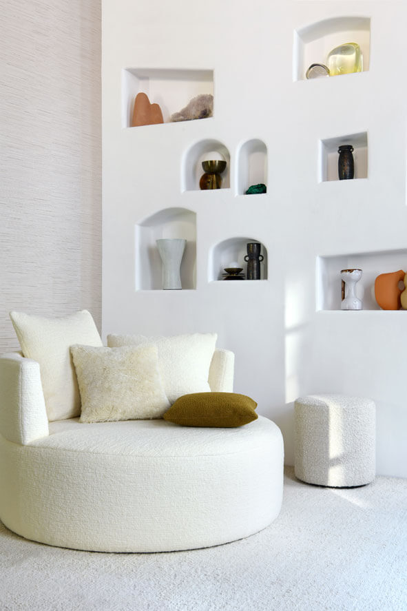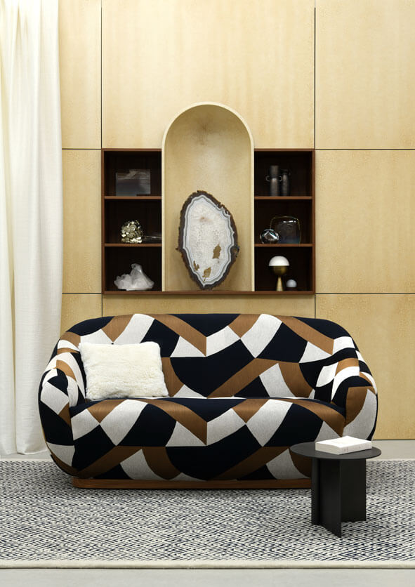 Une édition unique du Daybed de Vonnegut/Kraft est également proposée. Cette pièce a été entièrement tapissée avec l’une des étoffes phares de la collection Signature de Lelièvre, s’inspirant des hauts sommets de l’Himalaya.