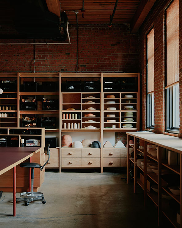 Nick Ozemba et Felicia Hung se sont rencontrés le premier jour de leur première année dans le programme de conception de meubles de la Rhode Island School of Design. Après quatre années de formation intensive axée sur les matériaux, Nick s'est lancé dans la conception d'intérieurs tandis que Felicia concevait des produits. Leurs styles de travail étant bien assortis, ils se sont associés en 2017 pour former In Common With et travaillent ensemble sur tout. Nick et Felicia ont constitué une équipe hors-pair et une famille de collaborateurs dans le monde entier, avec Brooklyn comme port d'attache.