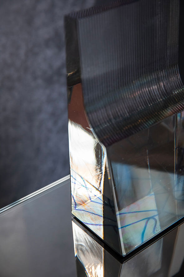 Artiste et designer installé à Seattle, John Hogan favorise le verre comme matériau. Entre sculpture et fonctionnalisme, son travail influe sur l’énergie radiante à travers la réfraction de la lumière.