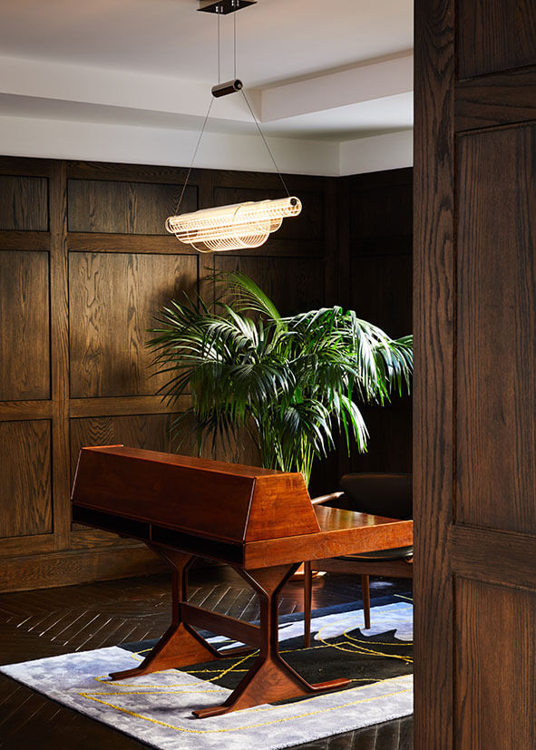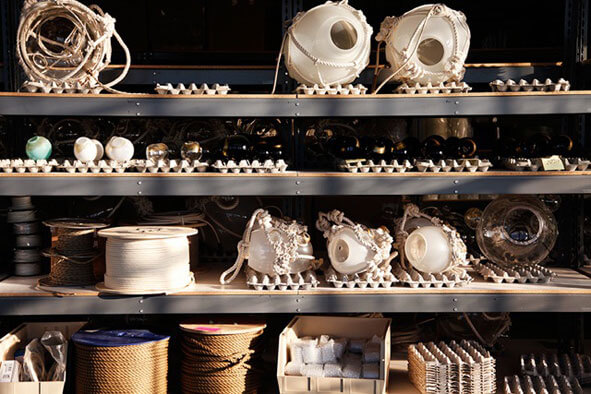 Roll & Hill s'engage à produire à la demande, ce qui lui permet de personnaliser ses pièces en fonction des besoins de ses clients. Dans leur usine de Grand Rapids, dans le Michigan, les meubles et les luminaires sont fabriqués à la main, une pièce à la fois. Leurs créations s'inspirent d'une riche palette de matériaux, notamment le laiton, le bronze, le cuir, le bois, la corde nouée à la main et le verre soufflé à la bouche. Les designers de Roll & Hill associent souvent des éléments historiques à des formes contemporaines pour créer des objets familiers, mais totalement nouveaux.