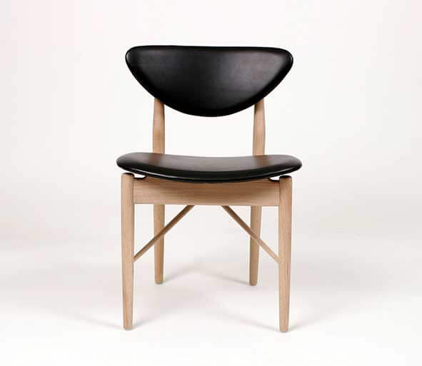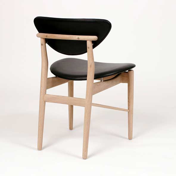 Finn Juhl a réalisé un grand nombre de chaises au cours de sa vie. C’est en 1946 que le maître du design danois a imaginé la 108 Chair. Loin du design de la chaise de salle à manger traditionnelle, cette chaise emblématique présente des détails exceptionnels tels que des barreaux en biais et des barres transversales coulissantes qui apportent un mouvement inattendu et du dynamisme à la structure. Fabriquée en chêne et noyer, la 108 Chair est tapissée de cuir ou de tissu.