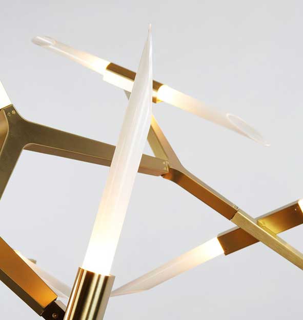 A l'instar des autres pièces produites par l’entreprise américaine Roll & Hill, Agnes Chandelier 10 est fabriqué sur demande et assemblé à la main à Grand Rapids, dans le Michigan.
