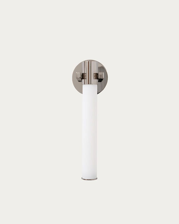 Bambou Sconce présente un abat-jour en forme de tube, en verre sablé opalin blanc. L'applique en métal est disponible en laiton satiné ou poli, laiton noirci ou nickel poli. Elle permet une diffusion optimale de la lumière dans votre intérieur.