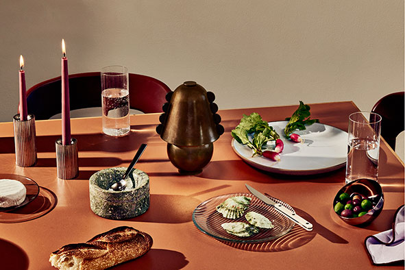 Fruit d'une collaboration du studio américain In Common With avec l'artiste Sophie Lou Jacobsen, Flora utilise les techniques classiques de la verrerie vénitienne et rend hommage à la beauté de la nature. La collection s'appuie sur leur engagement en faveur de la modularité, mais avec une particularité : les techniques utilisées produisent des pièces qui sont intrinsèquement irremplaçables - ainsi, comme les fleurs, il n'y en aura jamais deux identiques.