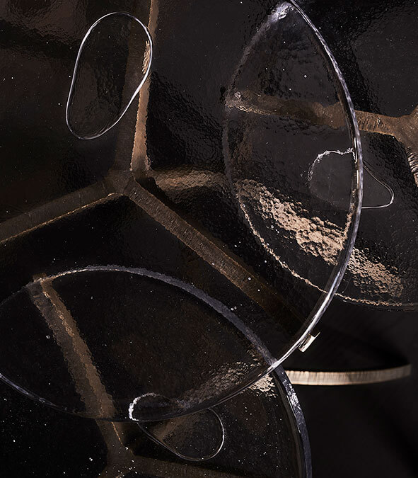 La Droplet Side Table de John Pomp présente un plateau en cristal transparent moulé à la main et une structure en métal. Cette table d’appoint se distingue par des inclusions de gouttelettes sculptées, variant d'un modèle à l'autre.