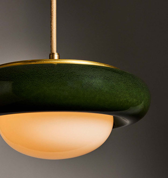 La suspension Humboldt Pendant 01 est une ode à l'artisanat californien du début du XXe siècle. Couleurs riches, matériaux naturels, formes modernes, vous avez le choix entre le grès et l'une des cinq glaçures personnalisées. Un luminaire en laiton, céramique et verre fabriqué sur demande et assemblé à la main à Grand Rapids dans le Michigan, États-Unis.