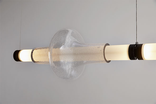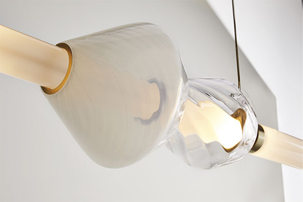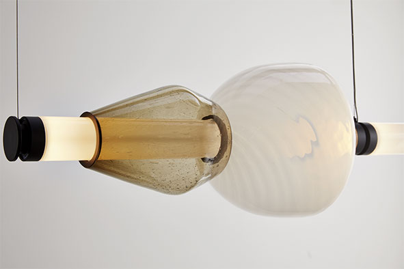 Inspirée par le halo lunaire, la collection LUNA Kaleido de Gabriel Scott est une synergie de couleurs, de formes et de lumière réfractée. Hautement personnalisable, elle présente un empilement de couleur sur couleur de diverses formes de verre soufflé et a été conçue pour offrir des interprétations infinies de ton, de la forme et de la lumière réfractée.