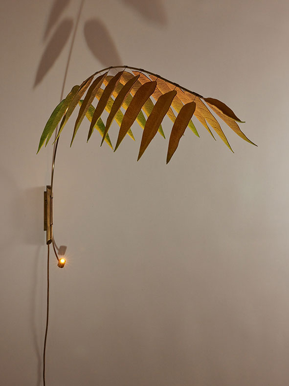 Conçue par le studio de design américain Pelle, la collection Lure représente une fantaisie totale. Dans l'esprit romantique des dessins botaniques, Lure Lantern Wall Lamp propose une représentation imaginative d'une vraie feuille existant dans le monde tropical.