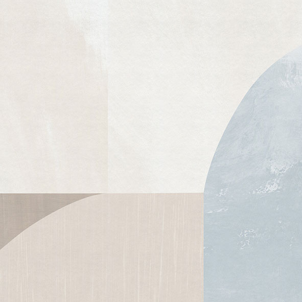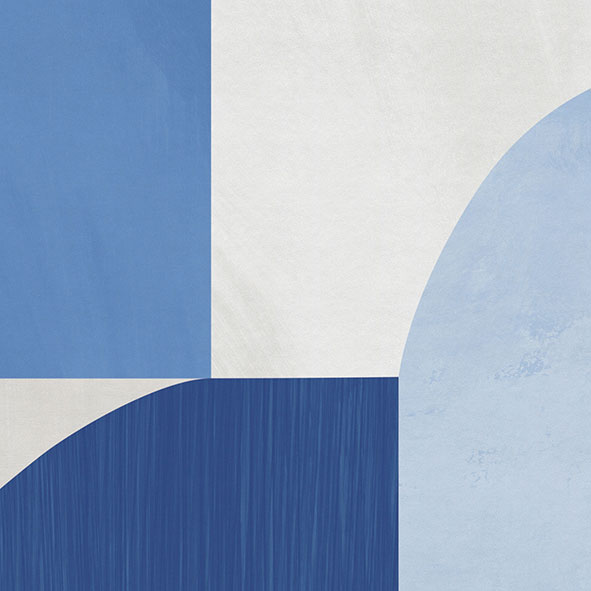 Éparpillées sur des îles lointaines, les maisons se rassemblent, se nichent dans des criques où la mer rencontre la terre, et les villes prennent une architecture collective singulière. De la mer, on voit un assemblage de formes. Depuis la terre, des ouvertures permettent d'apercevoir l'horizon bleu sans fin. Lyric regarde dans les deux directions à la fois, suivant la ligne nette du dôme d'une église, la courbe d'une alcôve ou l'angle tortueux d'un escalier. Elle illustre l'interaction entre ces formes architecturales fluides et les angles nets projetés par le soleil au fil de la journée, créant des motifs toujours changeants, à la fois géométriques et aléatoires.