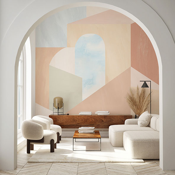 La collection de papier peint Lyric, signée Calico Wallpaper, s'inspire des villes côtières sereines. Elle célèbre les formes sculptées des maisons groupées et des rues sinueuses qui se fondent dans les flancs des montagnes.