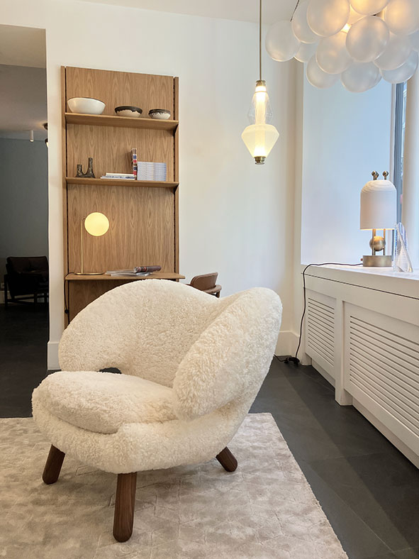 Fauteuil Pelican Chair de Finn Juhl disponible au showroom, dans cette finition.