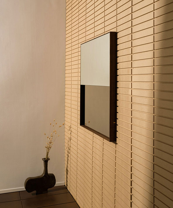 Square Half-Step Mirror de Bower confère une agréable sensation de profondeur, à la fois à moitié pleine et à moitié vide.