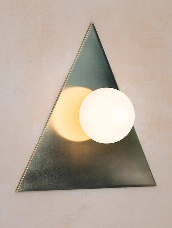 Applique Triangle Mini Orb du studio Allied Maker disponible au showroom, dans cette finition.