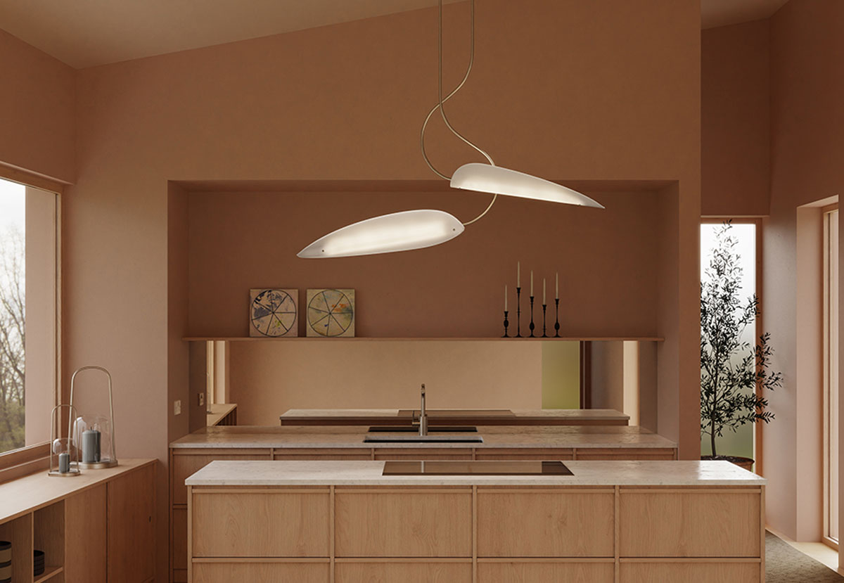La collection Unfurl capture avec éloquence les gestes organiques de la nature. Avec son design élégant, la suspension Unfurl présente des diffuseurs en verre qui ressemblent à de délicates feuilles, suspendues gracieusement par des tubes en laiton légèrement courbés. Chaque feuille peut tourner sur son axe, ce qui permet d'ajuster la direction de la lumière.