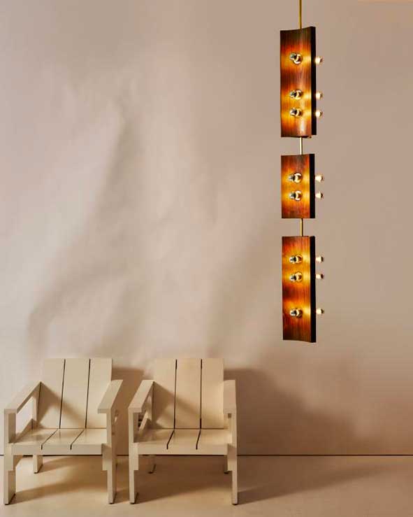 Cette suspension minimaliste en bois est un hommage à la passion du studio de design américain Blue Green Works pour le skateboard.
