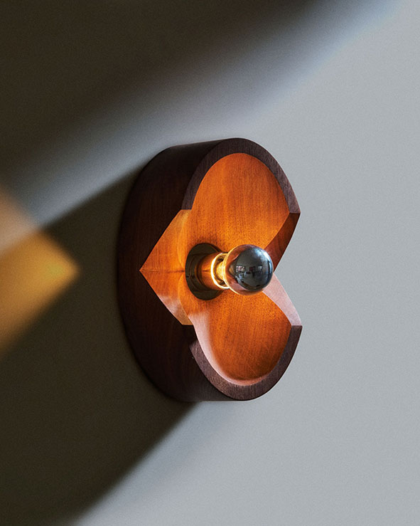 Cette applique minimaliste en bois est un hommage à la passion du studio de design américain Blue Green Works pour le skateboard.
